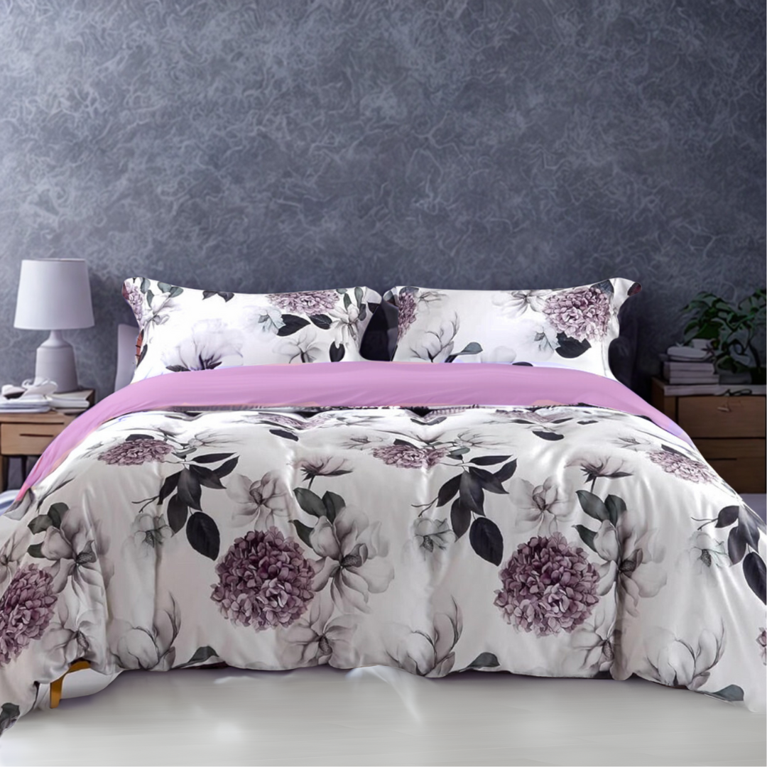 Transform your bedroom with our luxurious Plush Pink Blooms quilt cover set, featuring a bold floral design in vibrant shades of pink and purple. This eye-catching floral doona cover instantly adds elegance, colour, and warmth to any space – perfect for creating a cozy yet sophisticated bedroom retreat.